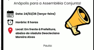 ASSEMBLEIA CONJUNTA – Os sindicatos os servidores municipais (ativos e inativos), pensionistas e aposentados unem forças para a assembleia conjunta que acontecerá no próximo dia 24 (terça-feira), às 8 horas, abaixo do viaduto Deocleciano Alves, na Avenida Brasil, em frente ao novo Centro Administrativo